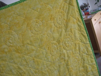 ReplyDeleteYour turtle quilt is adorable - love that swirly quilting. Your swap quilt is fantastic! Great layout, terrific quilting and wonderful prairie point border. Fantastic! Ann :-)
